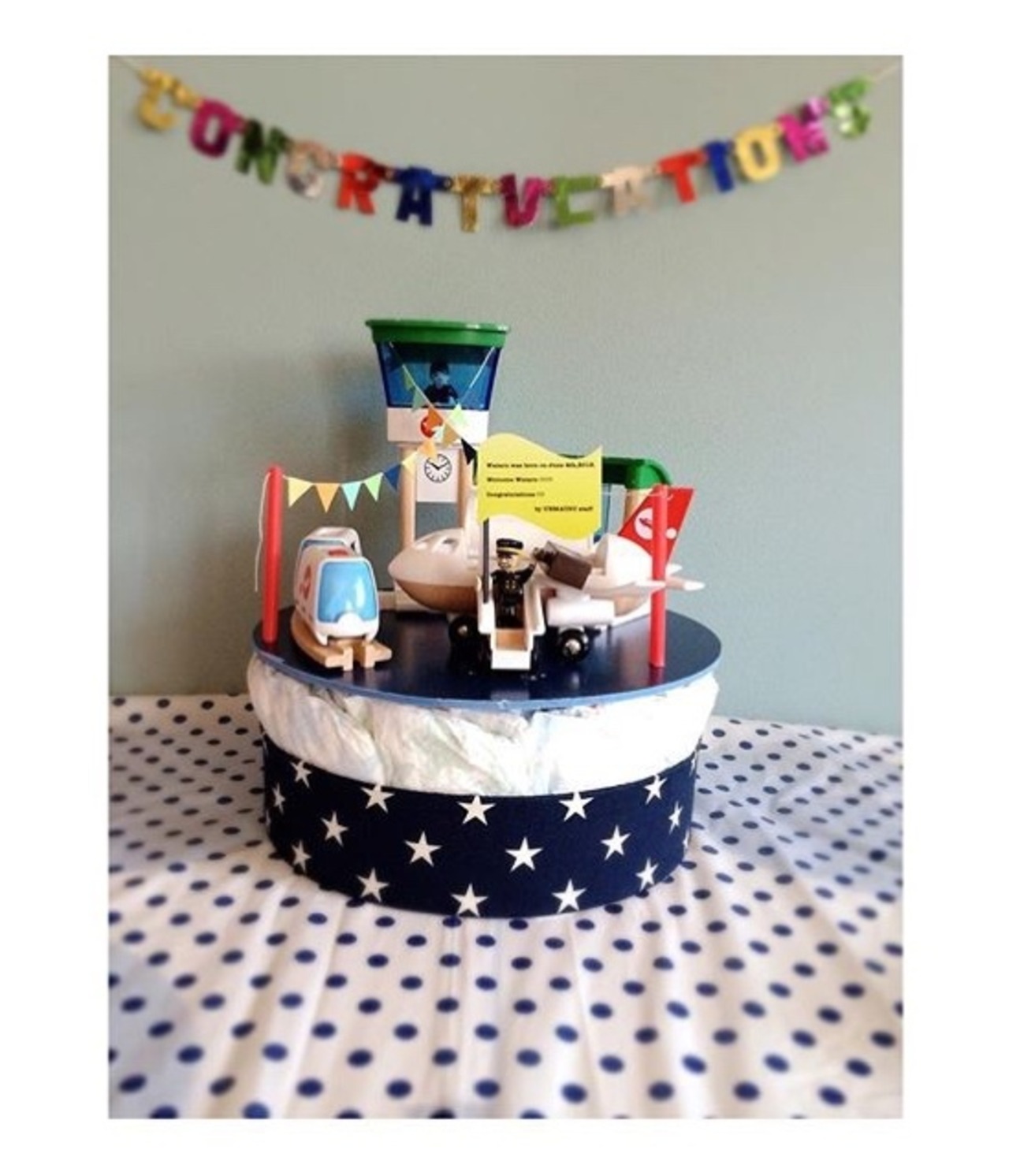 BRIOの木製レールセットを使ったダイパーケーキ。